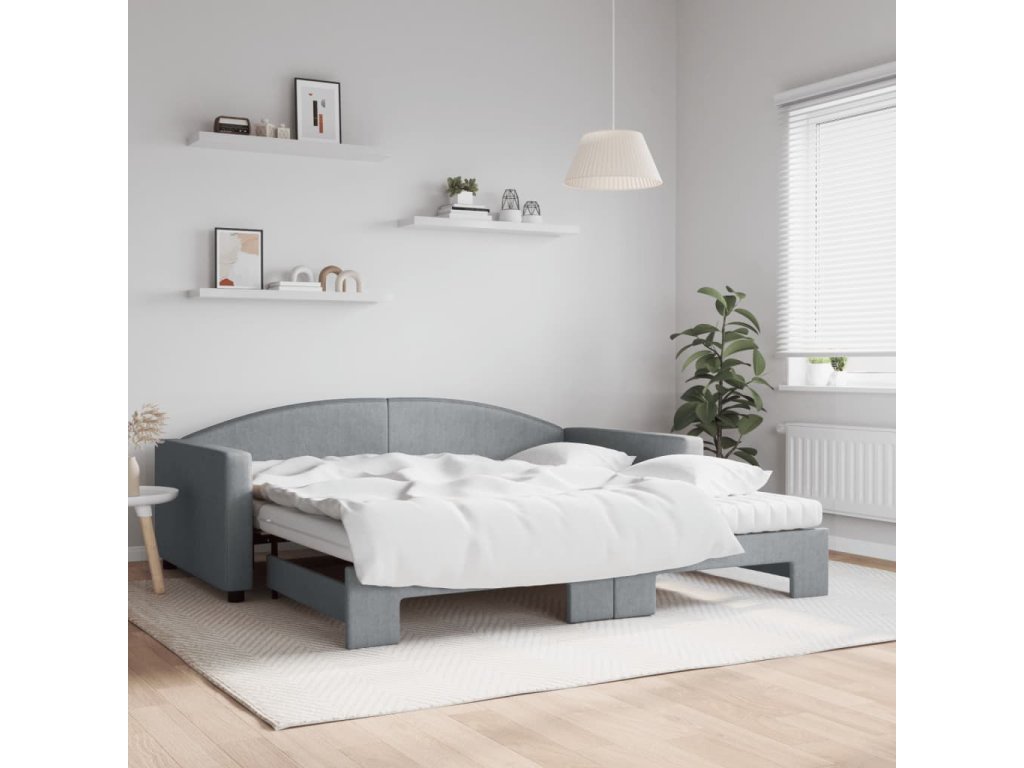 Válenda s přistýlkou a matracemi světle šedá 100x200 cm textil 3197211