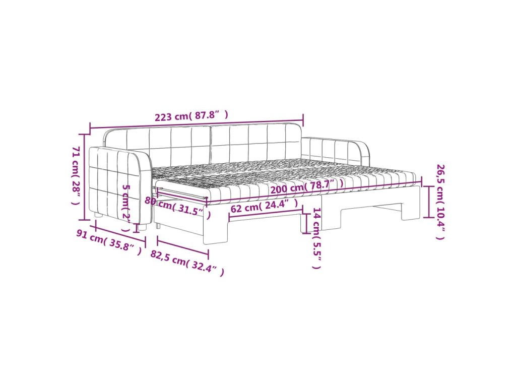 - Rozměry (nevysunuté): 223 x 91 x 71 cm (D x Š x V)