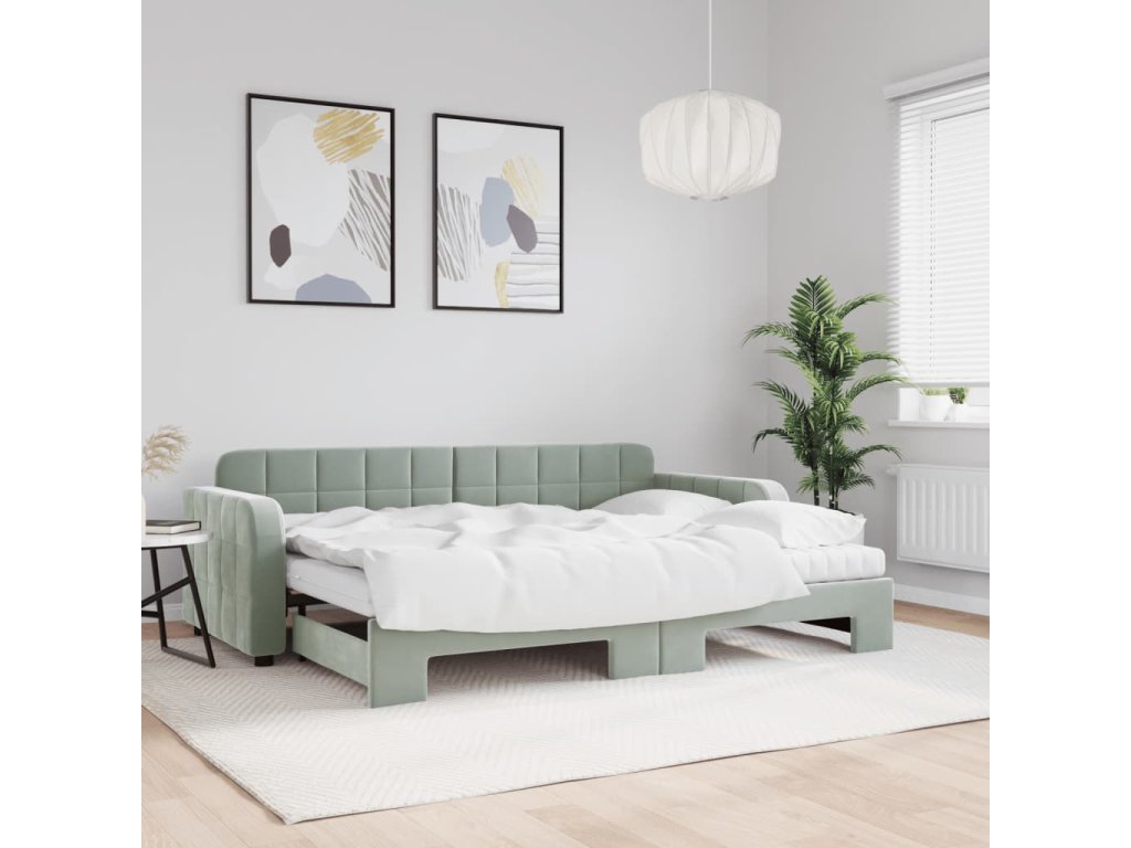 Válenda s přistýlkou a matracemi světle šedá 80 x 200 cm samet 3196946