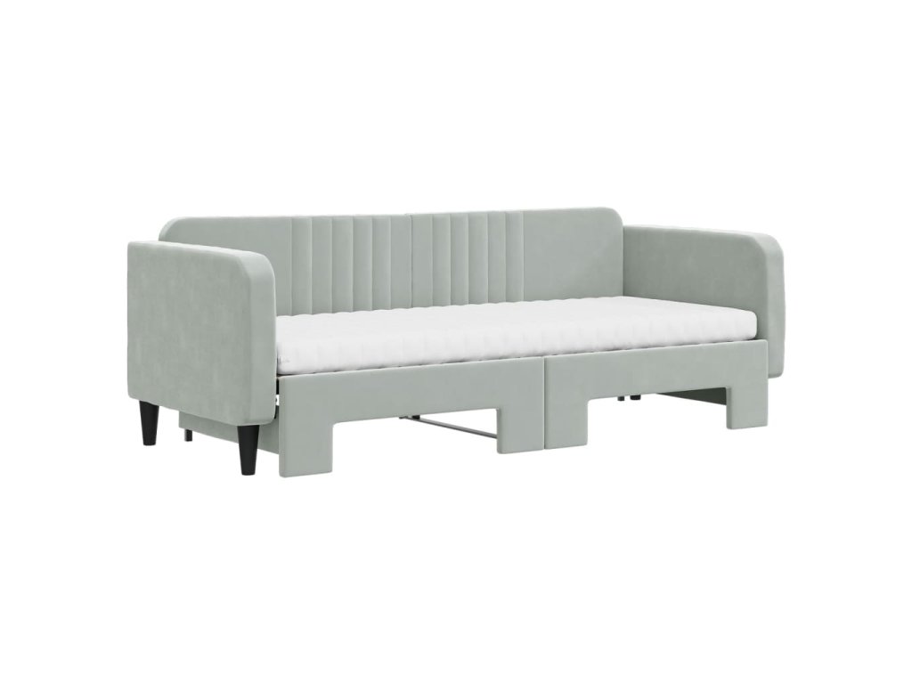 Válenda s přistýlkou a matracemi světle šedá 80 x 200 cm samet 3197080