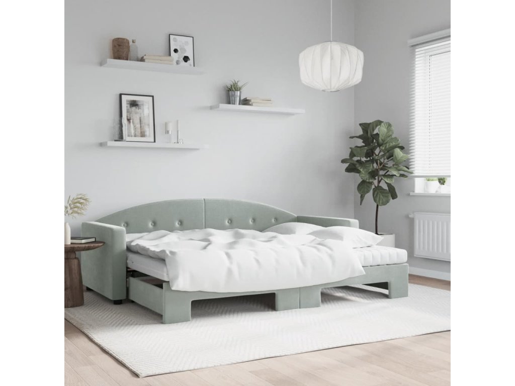 Válenda s přistýlkou a matracemi světle šedá 80 x 200 cm samet 3197318
