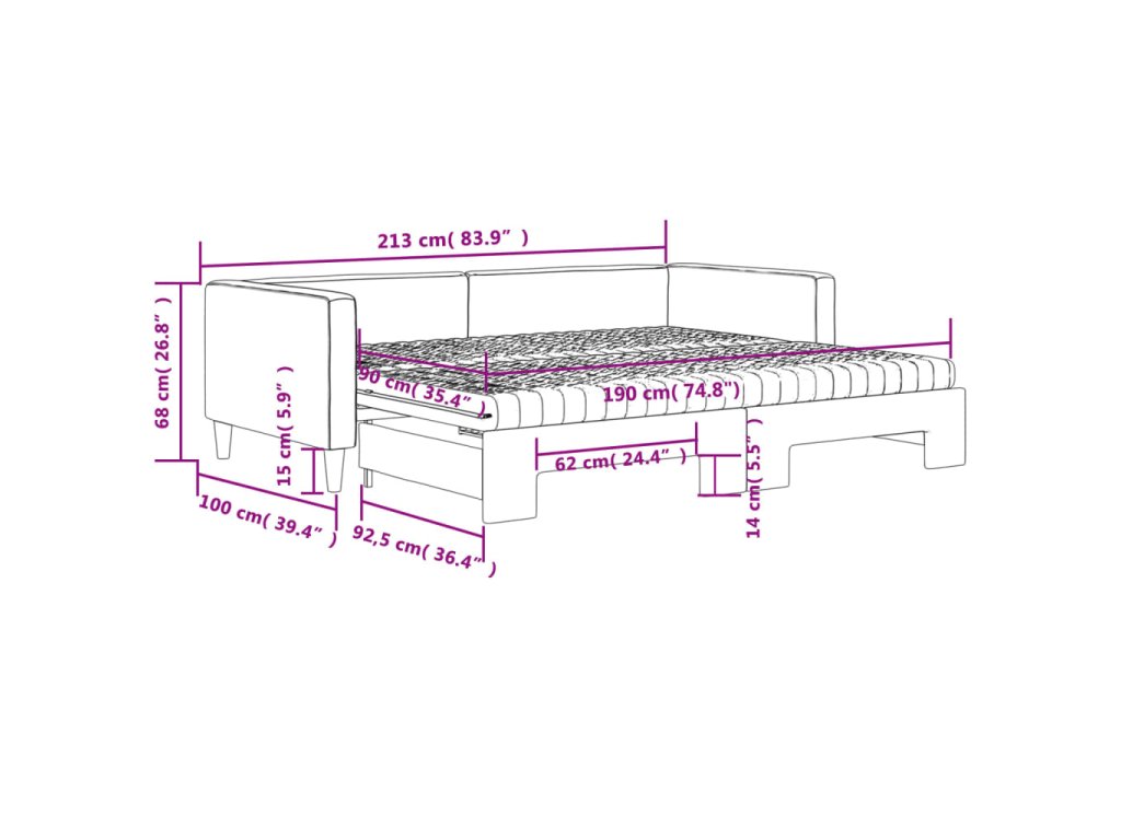 - Všestranná válenda: Rozkládací pohovku lze během dne používat jako pohovku a v noci ji přeměníte na dvoulůžko pomocí přistýlky, kterou snadno vysunete, takže představuje pohodlné řešení pro uložení vašich hostů a zároveň maximálně využívá prostor.