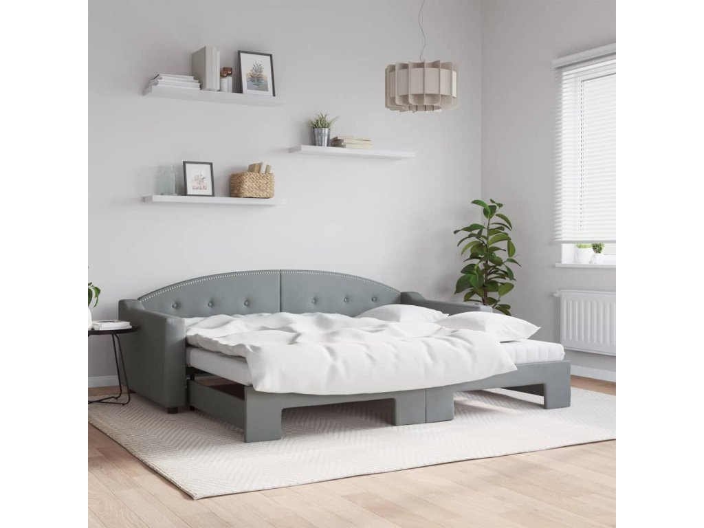 Válenda s přistýlkou a matracemi světle šedá 90 x 200 cm textil 3197548