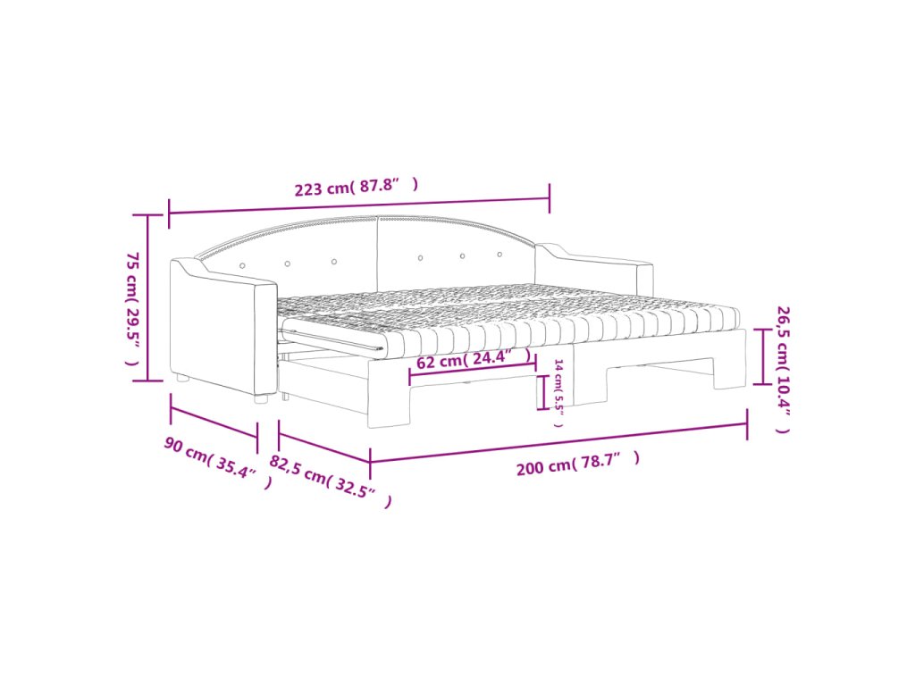 - Rozměry (nevysunuté): 223 x 90 x 75 cm (D x Š x V)