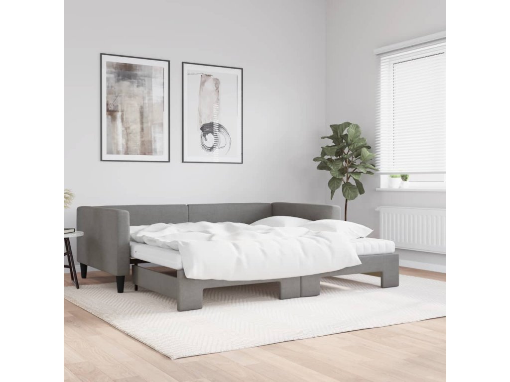 Válenda s přistýlkou a matracemi tmavě šedá 100 x 200 cm textil 3196602