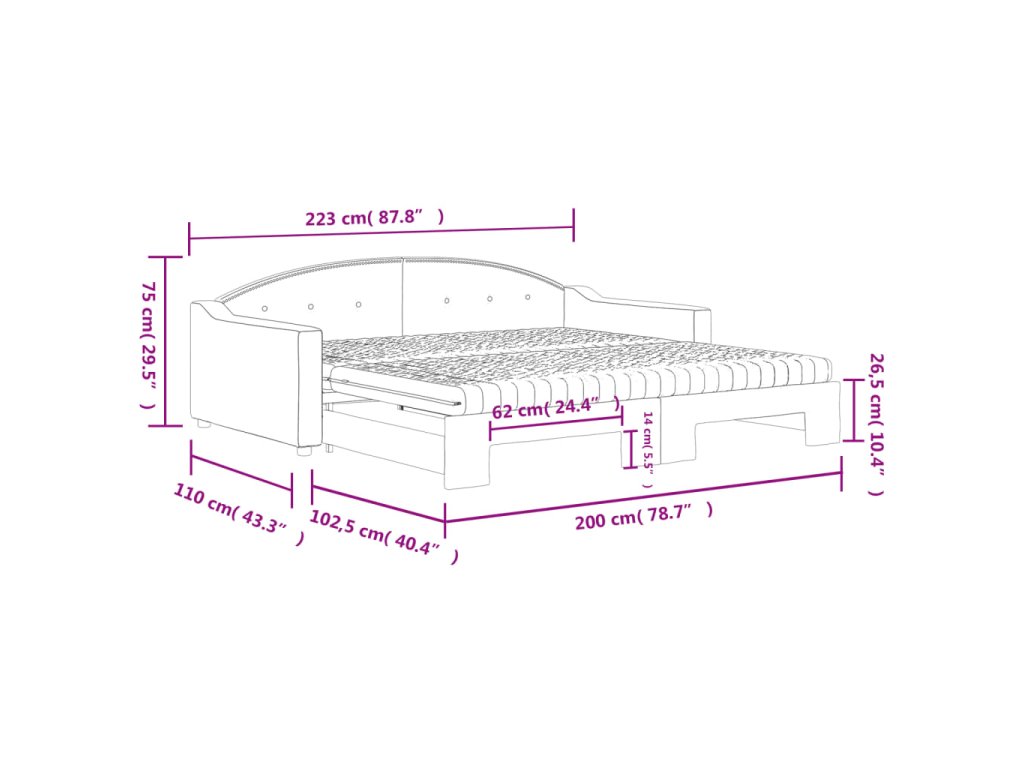 - Rozměry (nevysunuté): 223 x 110 x 75 cm (D x Š x V)