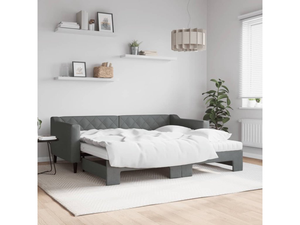 Válenda s přistýlkou a matracemi tmavě šedá 90 x 190 cm textil 3197455