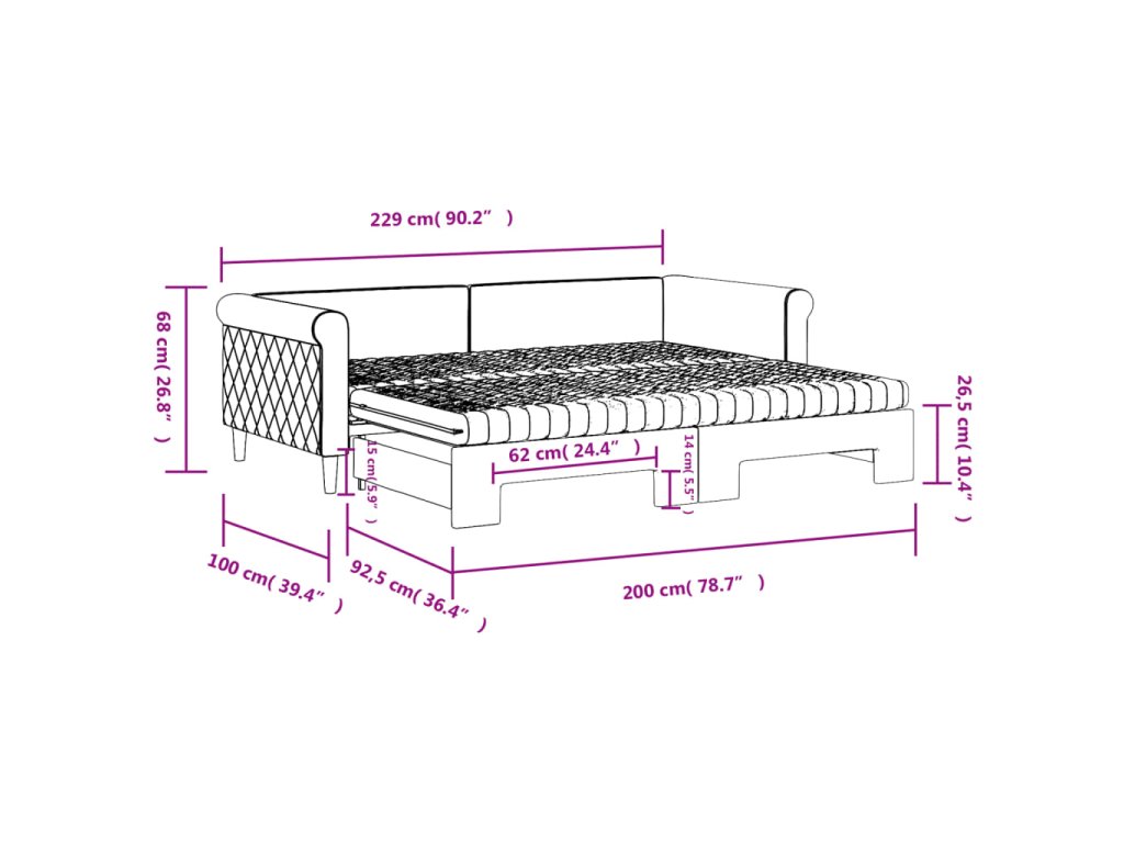 - Rozměry (nevysunuté): 229 x 100 x 68 cm (D x Š x V)