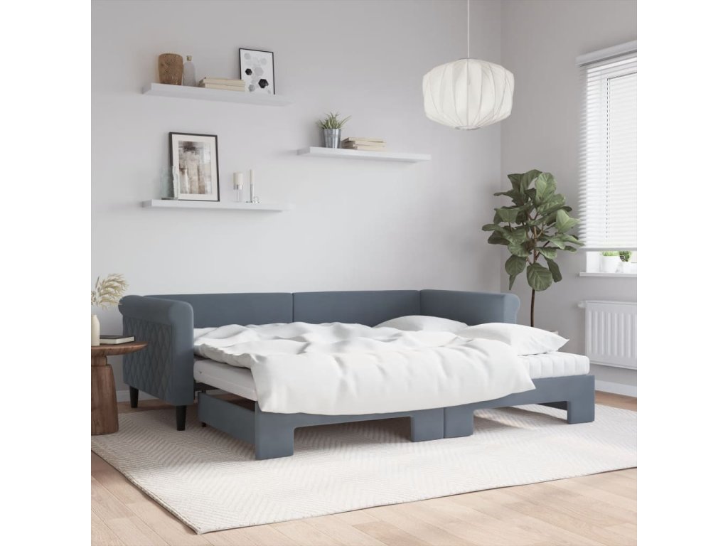 Válenda s přistýlkou a matracemi tmavě šedá 90 x 200 cm samet 3197796