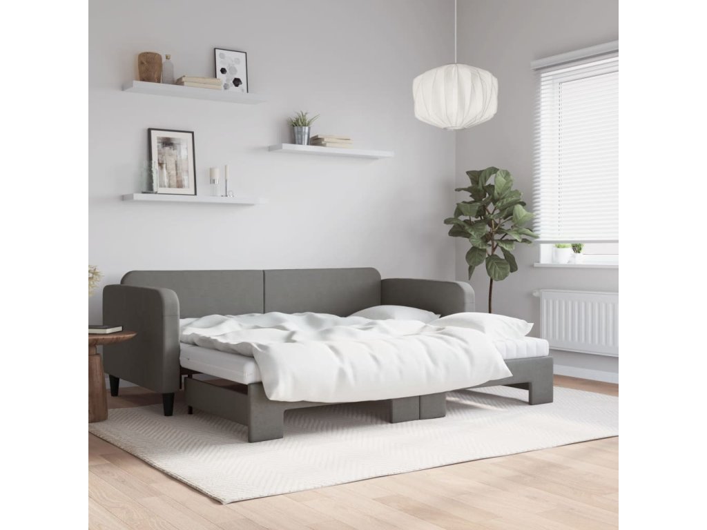 Válenda s přistýlkou a matracemi tmavě šedá 90 x 200 cm textil 3196835