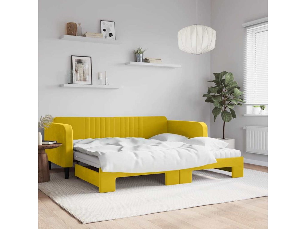 Válenda s přistýlkou a matracemi žlutá 100 x 200 cm samet 3197099