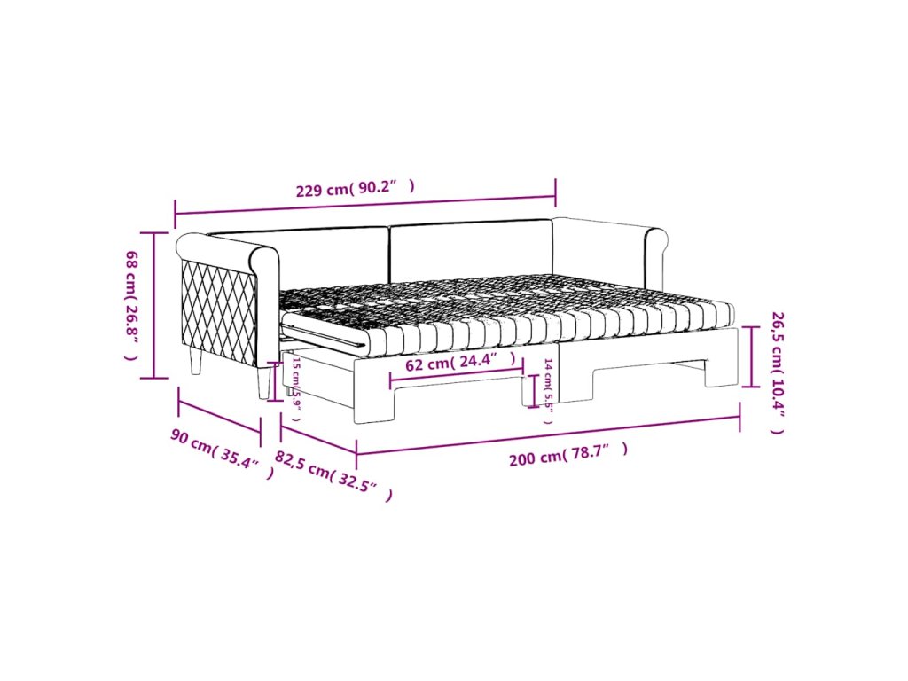 - Rozměry (nevysunuté): 229 x 90 x 68 cm (D x Š x V)
