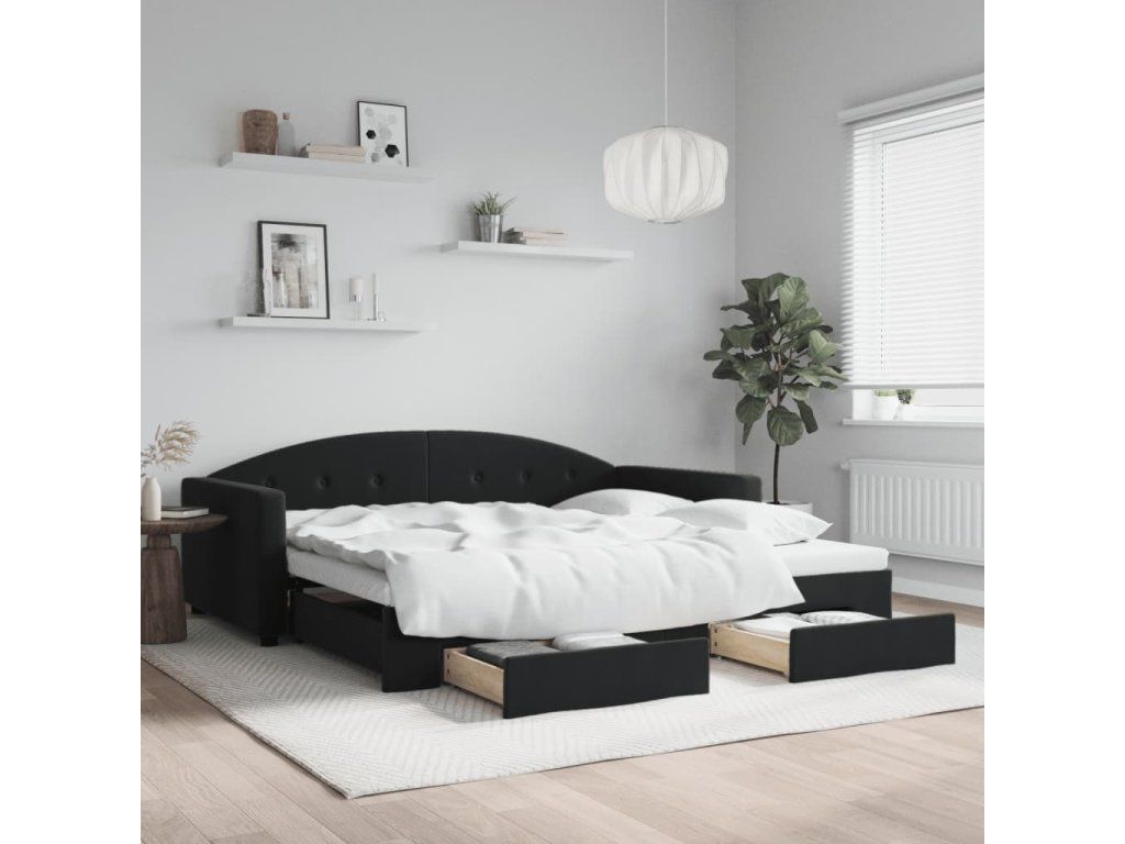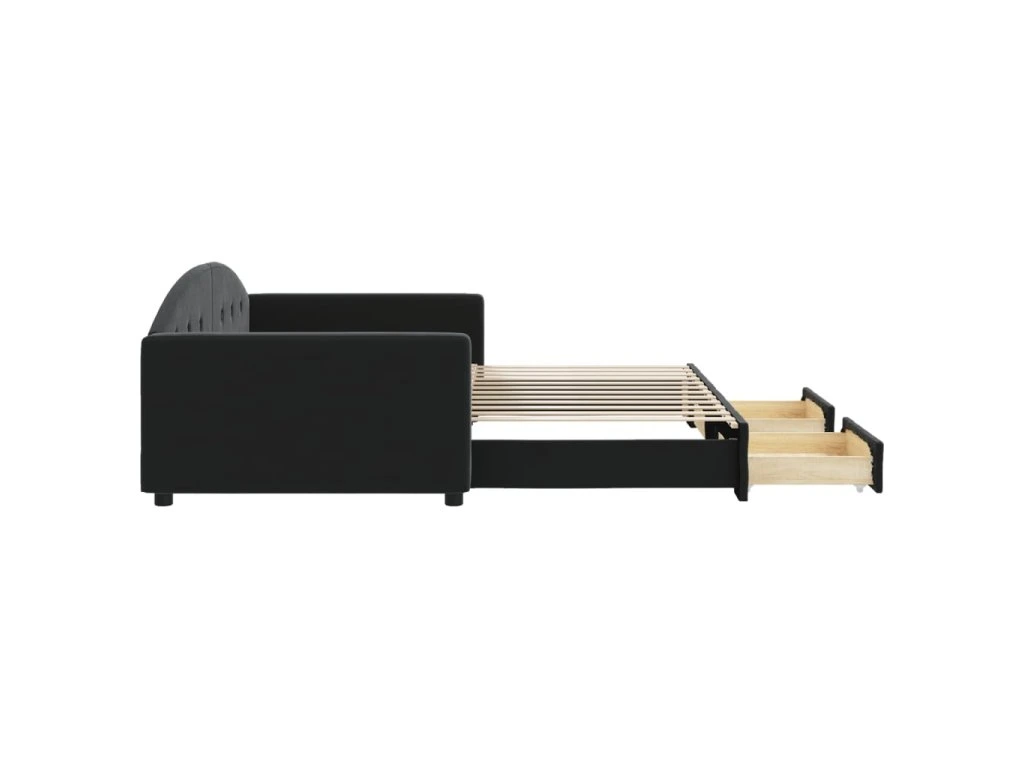 Válenda s přistýlkou a zásuvkami černá 100 x 200 cm samet 3197360
