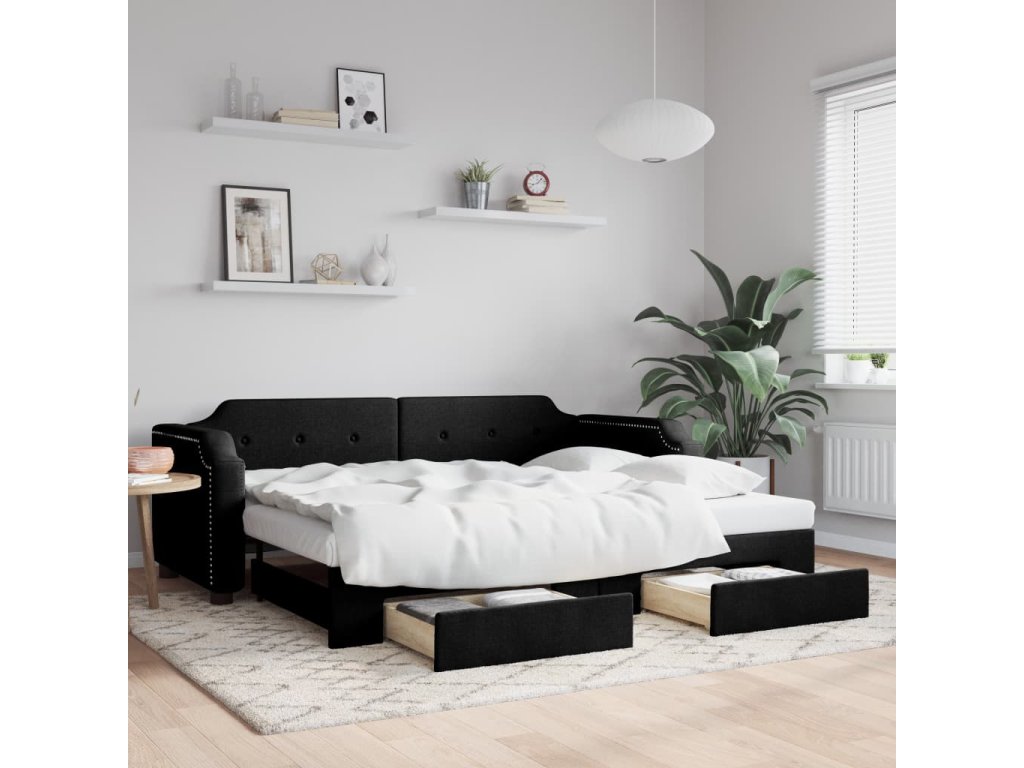 Válenda s přistýlkou a zásuvkami černá 100 x 200 cm textil 3197677
