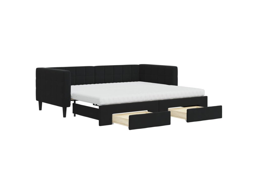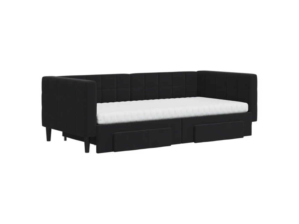 Válenda s přistýlkou a zásuvkami černá 90 x 190 cm samet 3196778