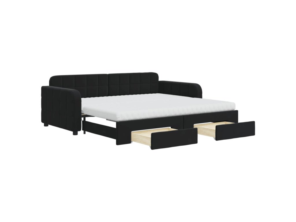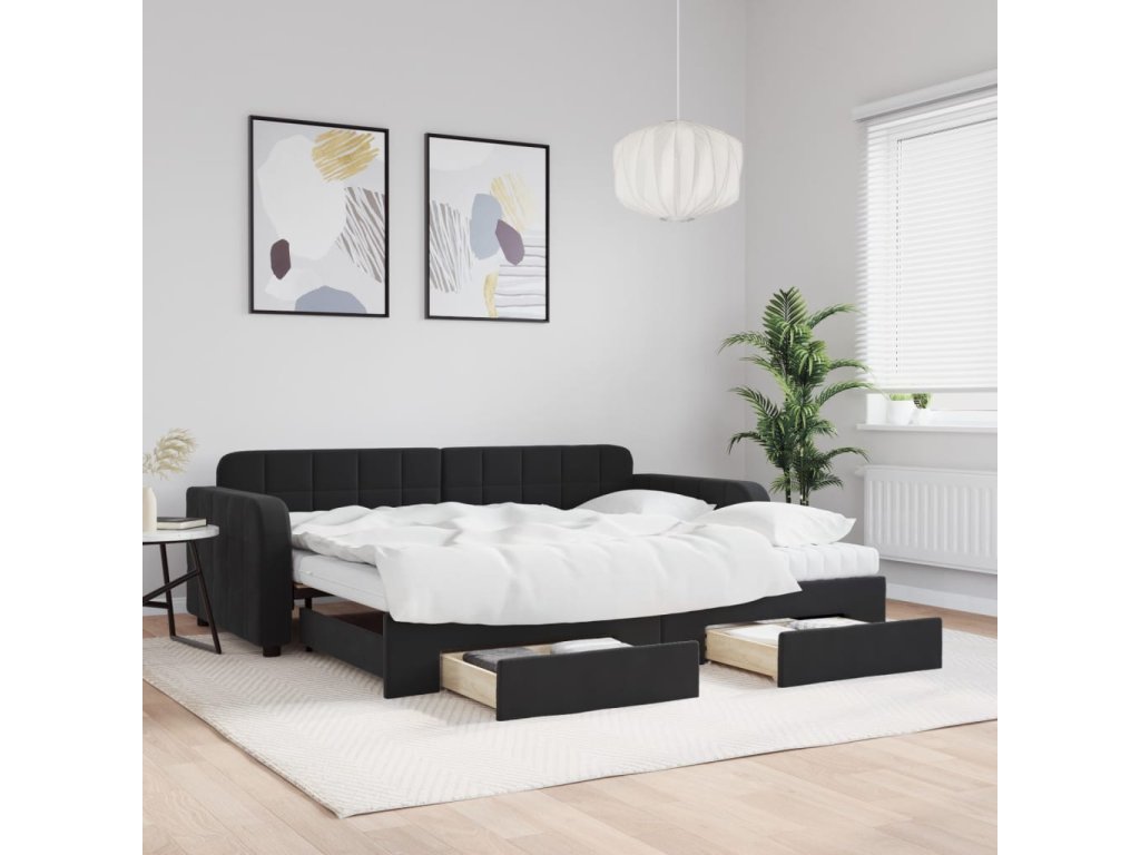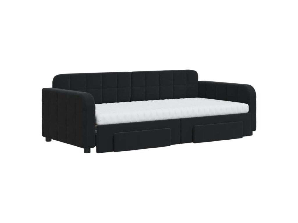 Válenda s přistýlkou a zásuvkami černá 90 x 190 cm samet 3197016