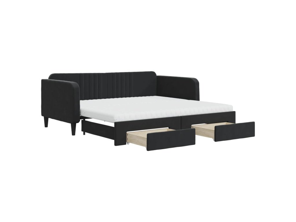 Válenda s přistýlkou a zásuvkami černá 90 x 190 cm samet 3197150