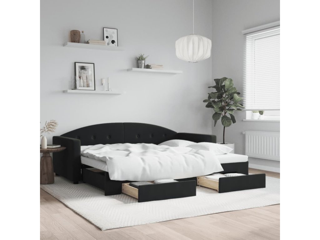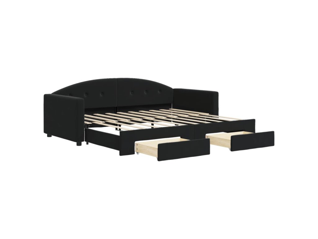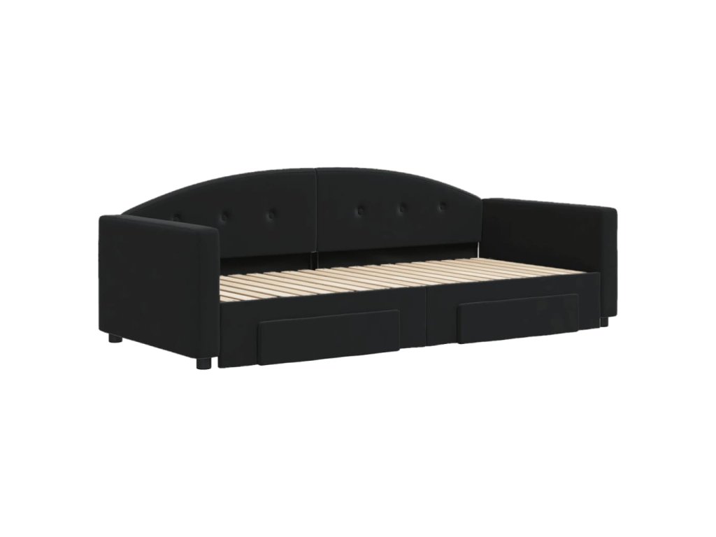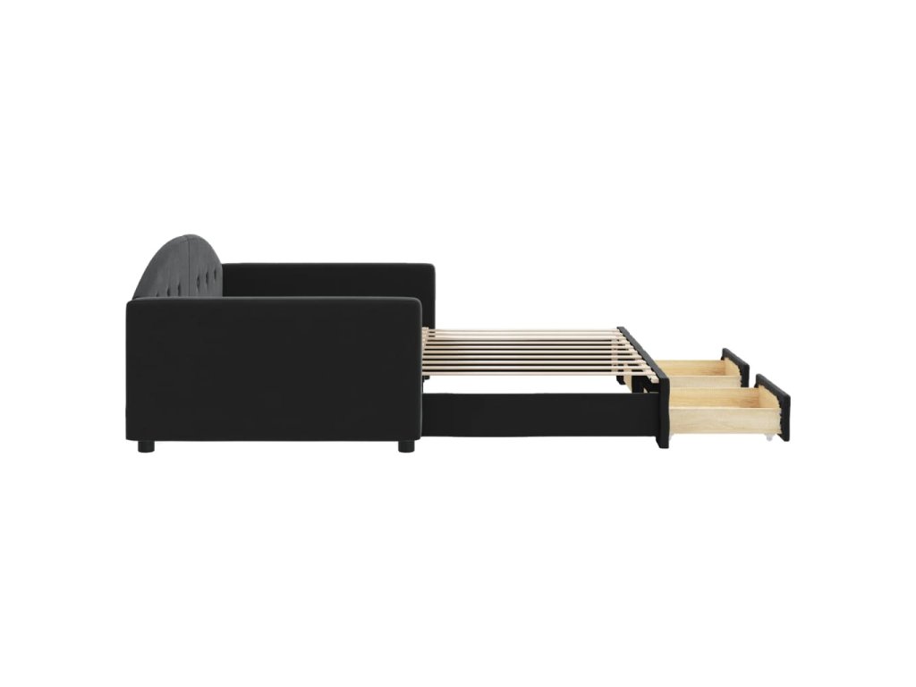 Válenda s přistýlkou a zásuvkami černá 90 x 190 cm samet 3197364