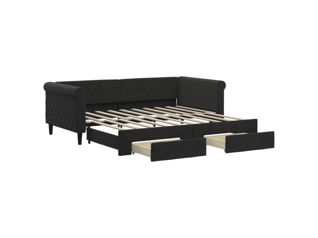 Válenda s přistýlkou a zásuvkami černá 90 x 190 cm samet 3197834
