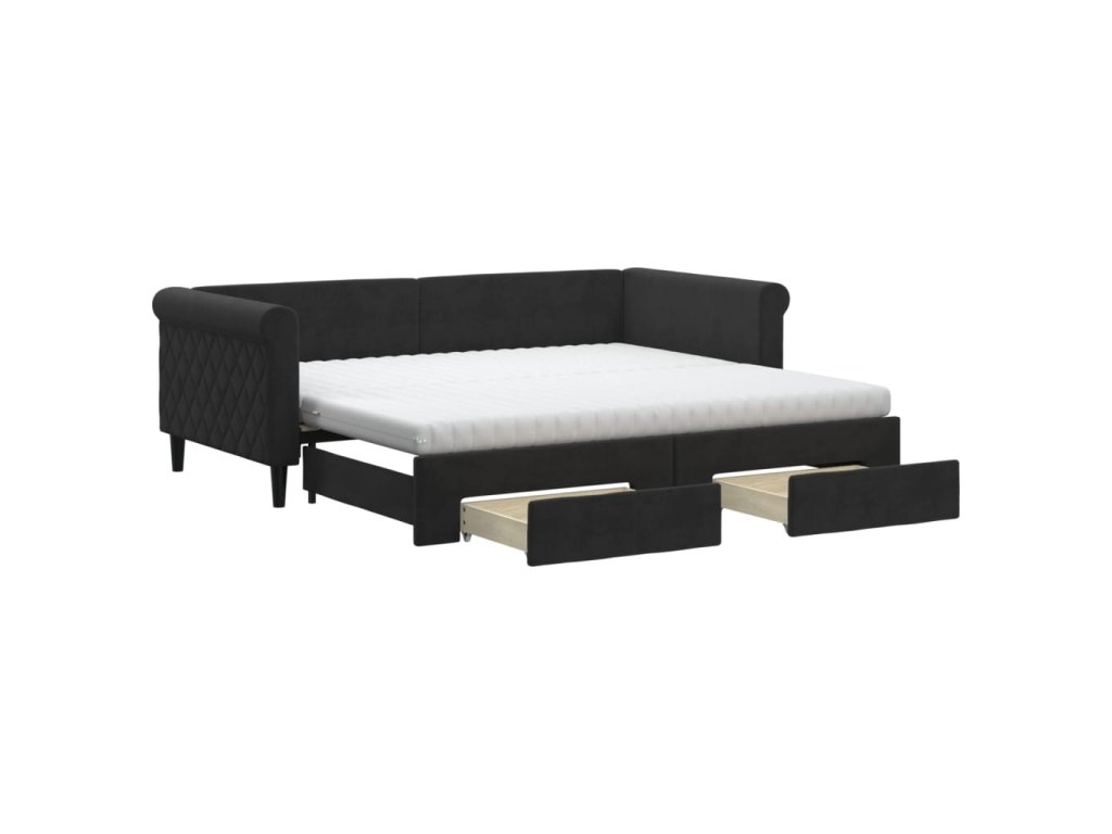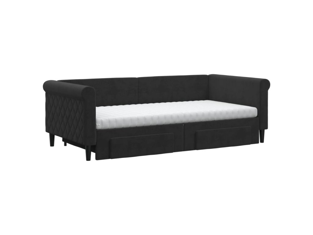 Válenda s přistýlkou a zásuvkami černá 90 x 190 cm samet 3197858