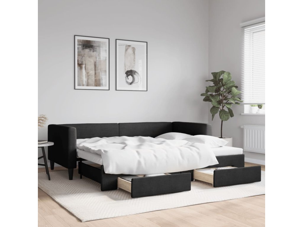 Válenda s přistýlkou a zásuvkami černá 90 x 190 cm textil 3196626