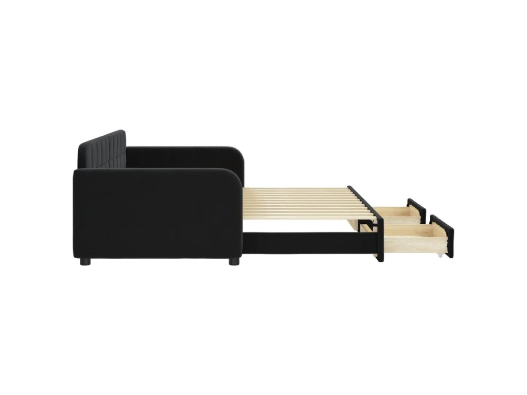 Válenda s přistýlkou a zásuvkami černá 90 x 200 cm samet 3196981