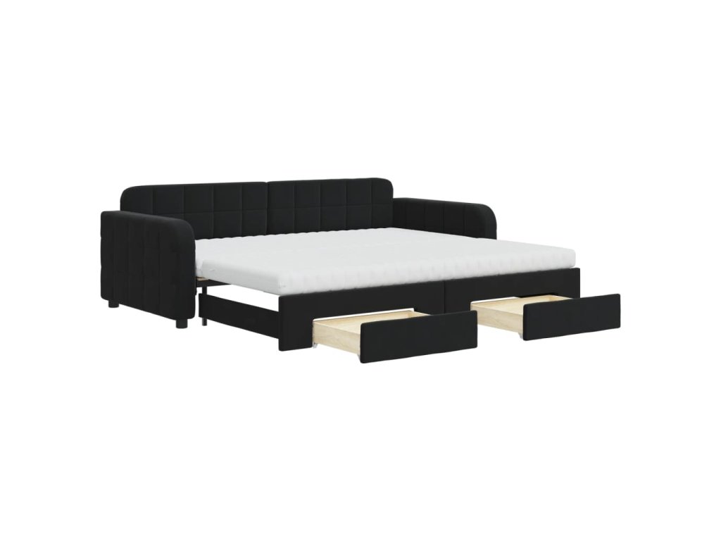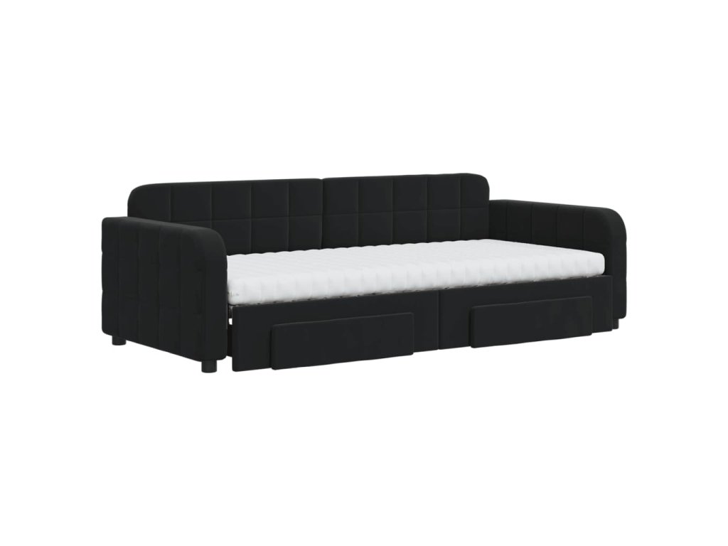 Válenda s přistýlkou a zásuvkami černá 90 x 200 cm samet 3197005