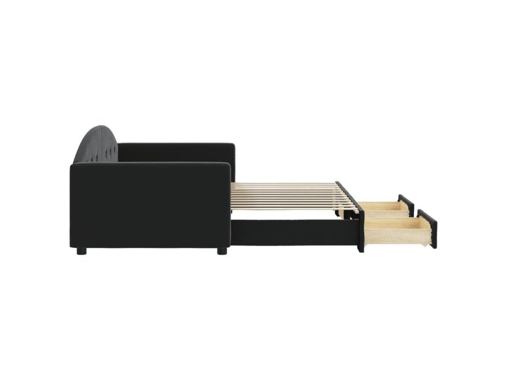 Válenda s přistýlkou a zásuvkami černá 90 x 200 cm samet 3197353