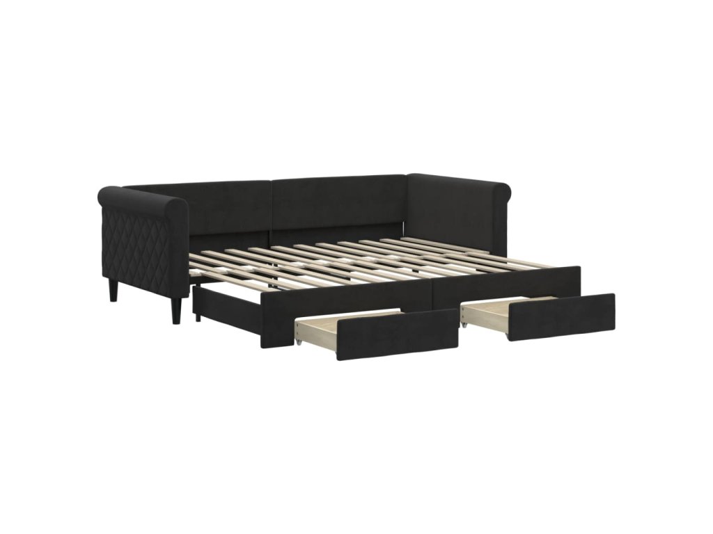 Válenda s přistýlkou a zásuvkami černá 90 x 200 cm samet 3197823