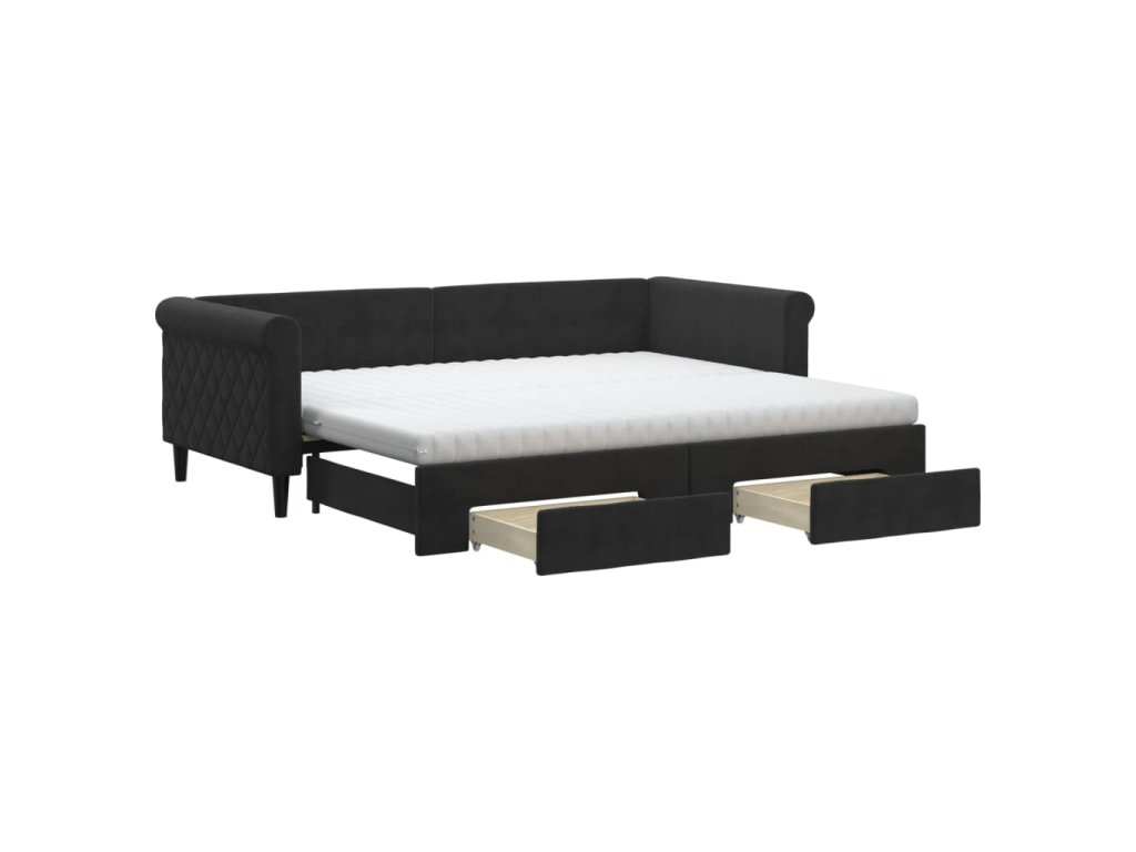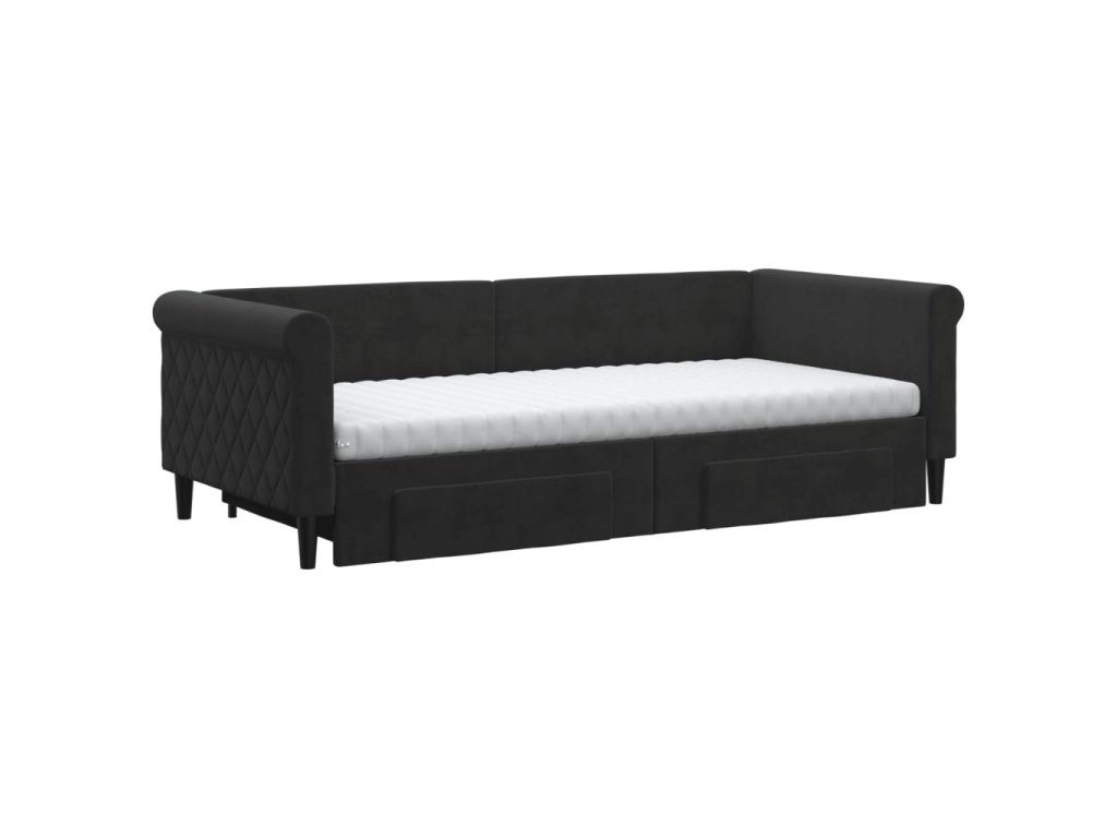 Válenda s přistýlkou a zásuvkami černá 90 x 200 cm samet 3197847
