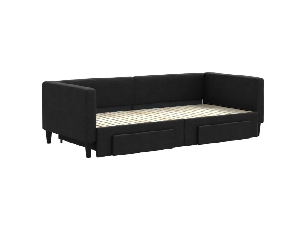 Válenda s přistýlkou a zásuvkami černá 90 x 200 cm textil 3196616