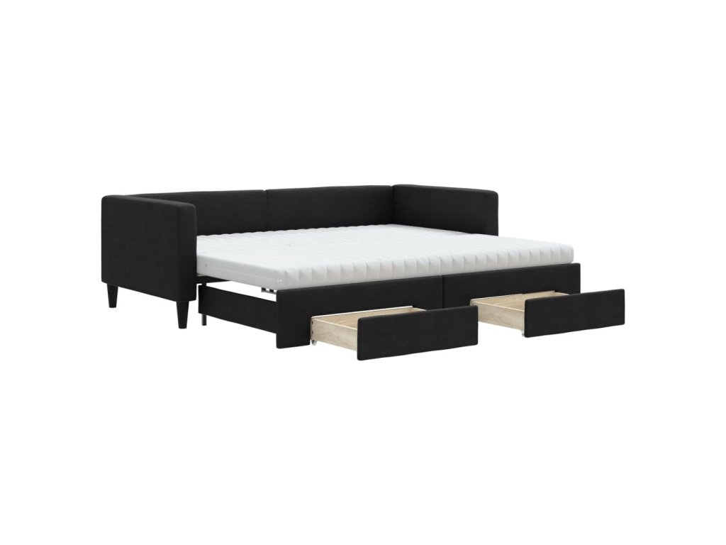 Válenda s přistýlkou a zásuvkami černá 90 x 200 cm textil 3196634
