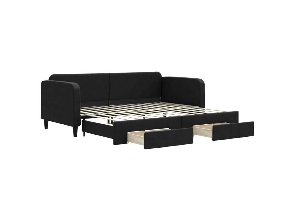 Válenda s přistýlkou a zásuvkami černá 90 x 200 cm textil 3196854