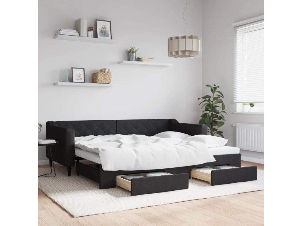 Válenda s přistýlkou a zásuvkami černá 90 x 200 cm textil 3197464