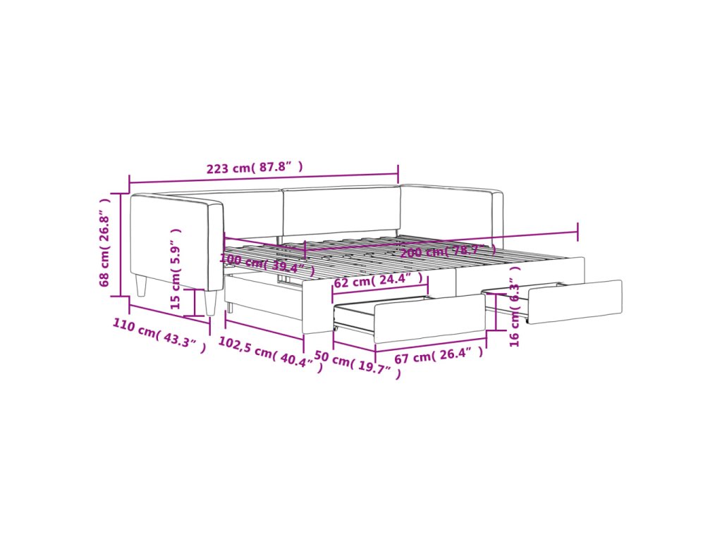 - Rozměry (nevysunuté): 223 x 110 x 68 cm (D x Š x V)