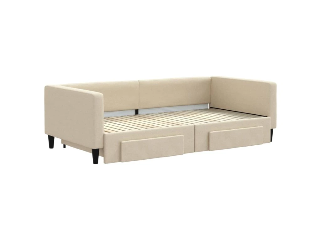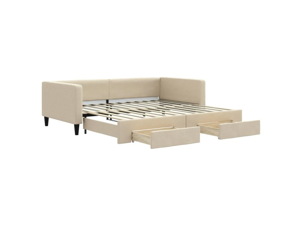 Válenda s přistýlkou a zásuvkami krémová 100 x 200 cm textil 3196623