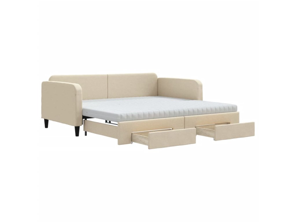 Válenda s přistýlkou a zásuvkami krémová 100 x 200 cm textil 3196879