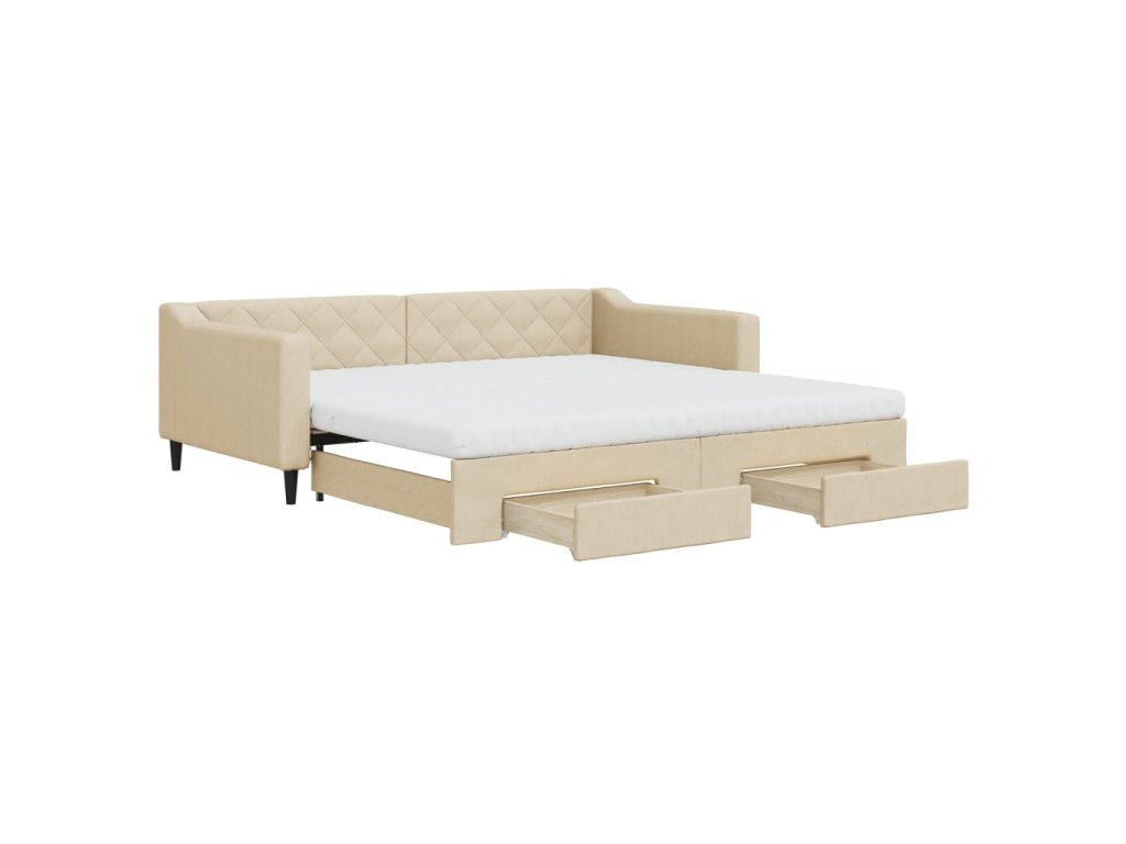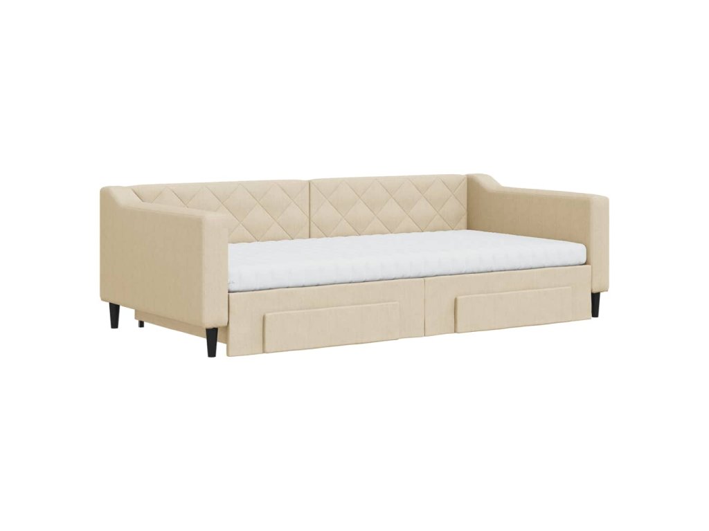 Válenda s přistýlkou a zásuvkami krémová 100 x 200 cm textil 3197489