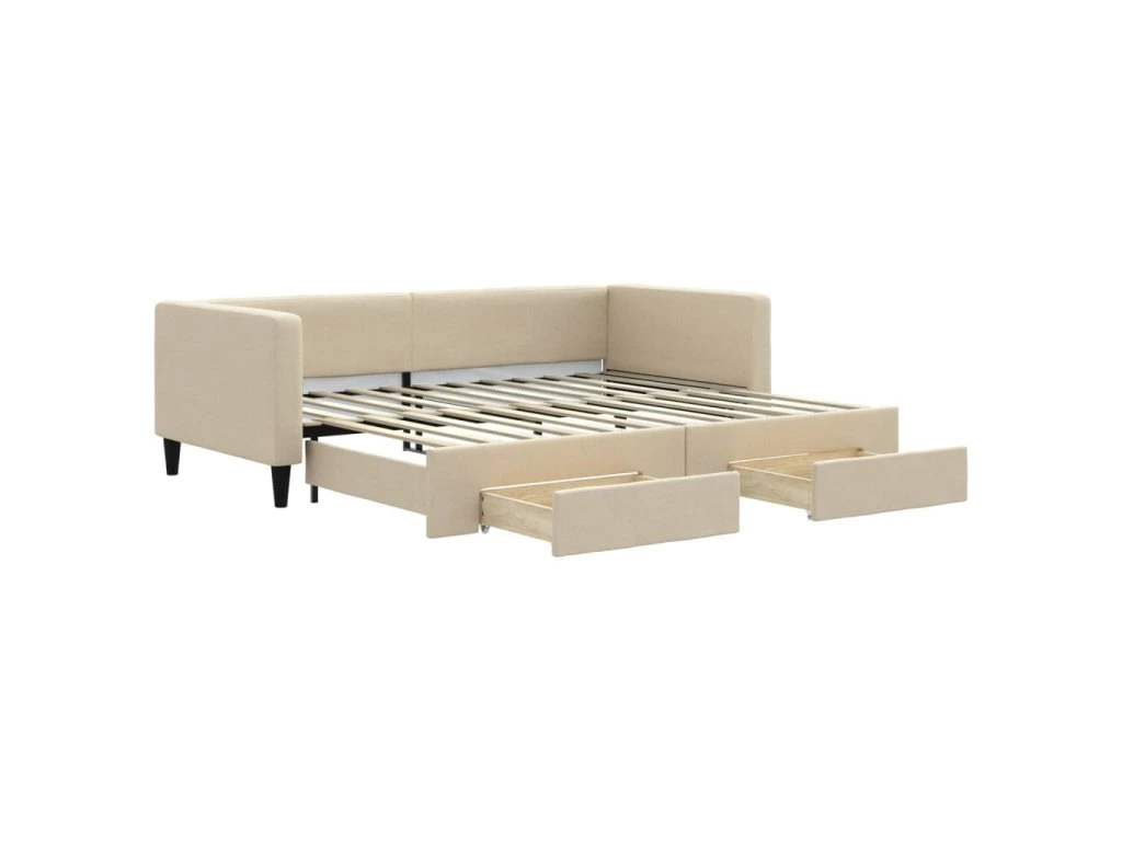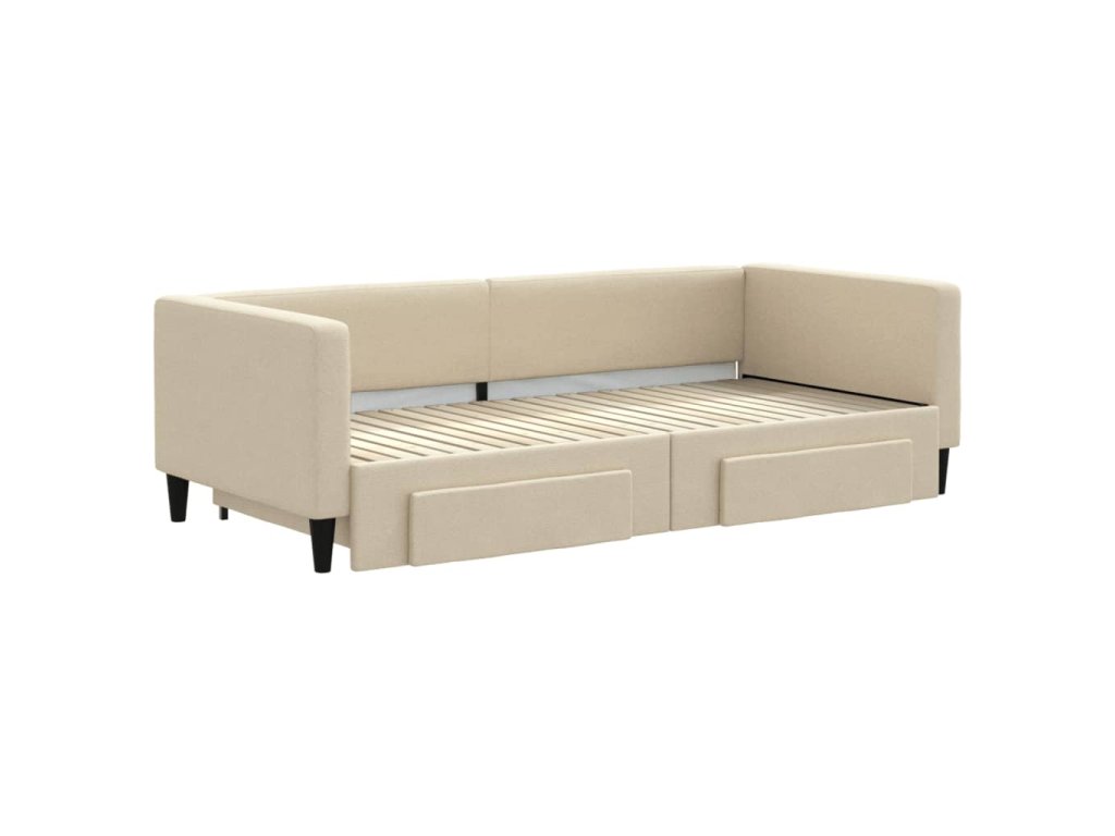 Válenda s přistýlkou a zásuvkami krémová 90 x 200 cm textil 3196618