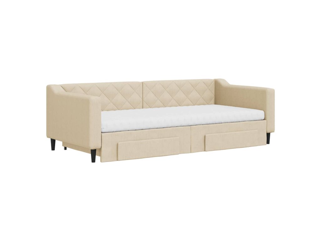 Válenda s přistýlkou a zásuvkami krémová 90 x 200 cm textil 3197484