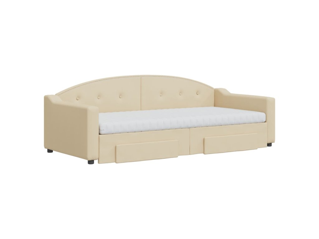 Válenda s přistýlkou a zásuvkami krémová 90 x 200 cm textil 3197588