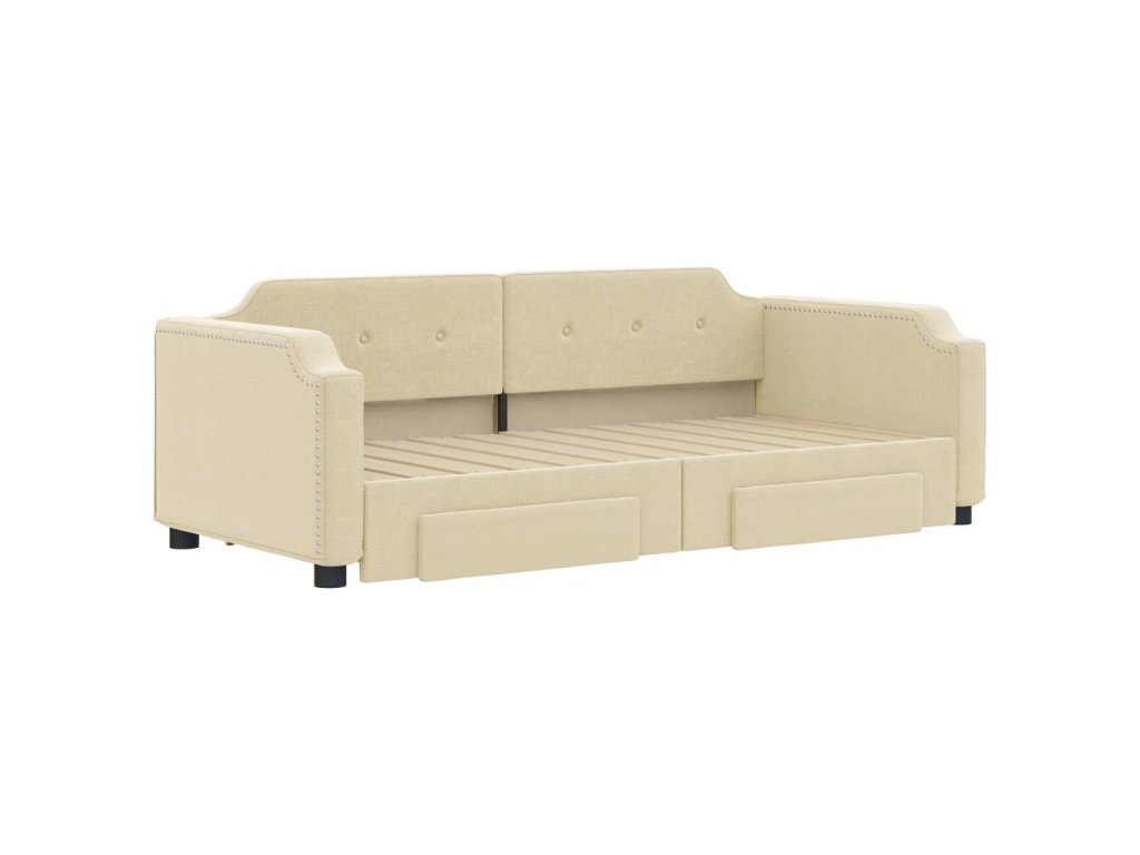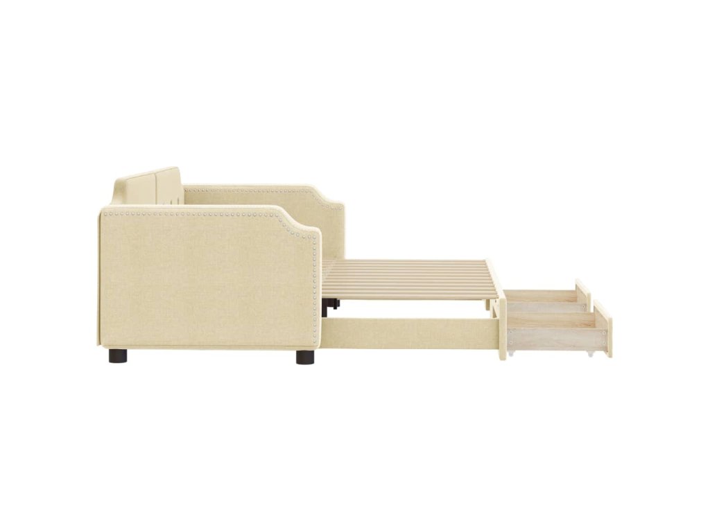 Válenda s přistýlkou a zásuvkami krémová 90 x 200 cm textil 3197674
