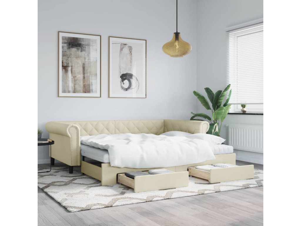 Válenda s přistýlkou a zásuvkami krémová 90 x 200 cm umělá kůže 3197737