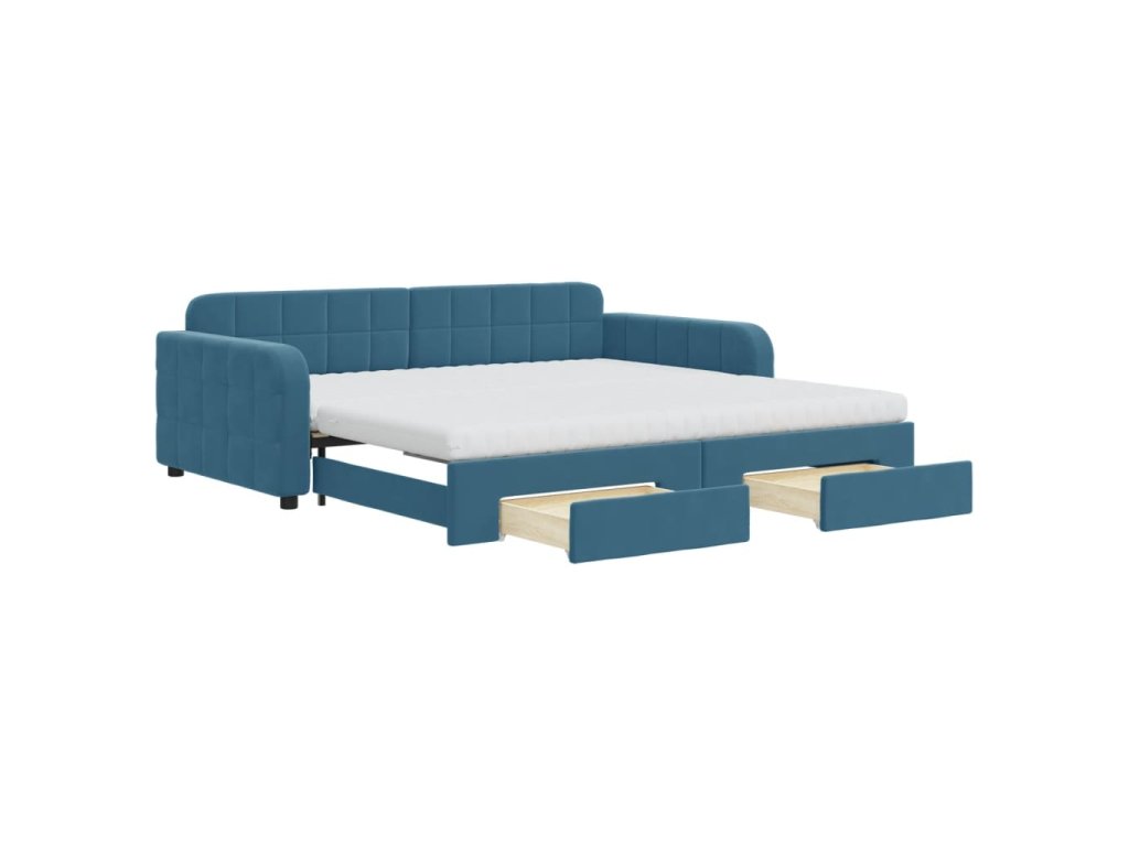 Válenda s přistýlkou a zásuvkami modrá 100 x 200 cm samet 3197007