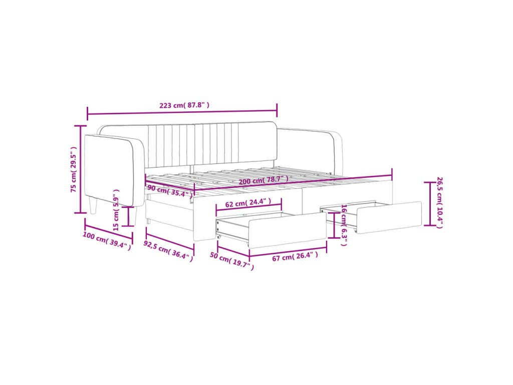 - Rozměry (nevysunuté): 223 x 100 x 75 cm (D x Š x V)