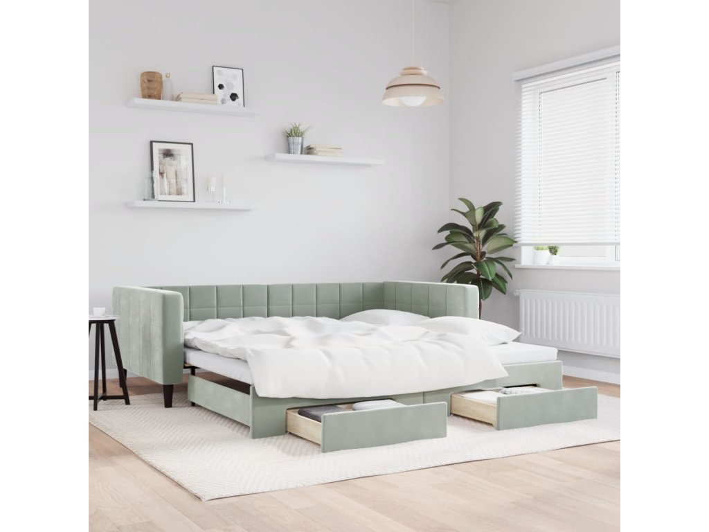 Válenda s přistýlkou a zásuvkami světle šedá 100 x 200 cm samet 3196746