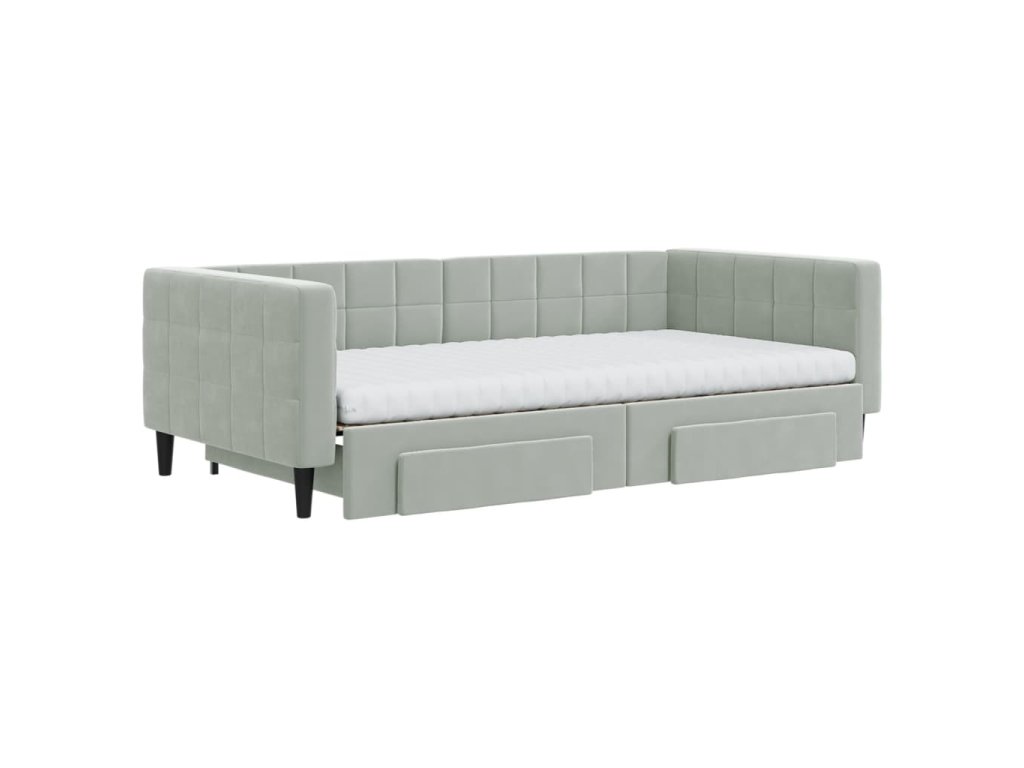 Válenda s přistýlkou a zásuvkami světle šedá 100 x 200 cm samet 3196770