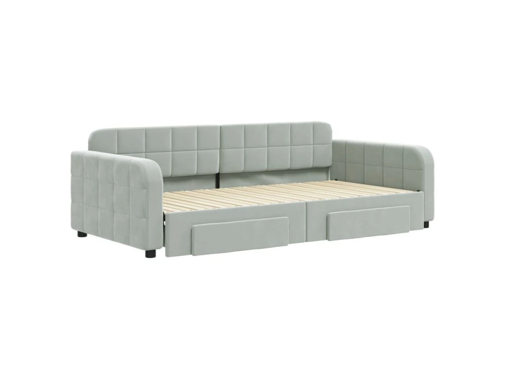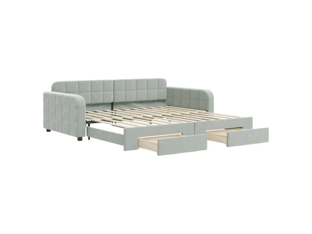 Válenda s přistýlkou a zásuvkami světle šedá 100 x 200 cm samet 3196984