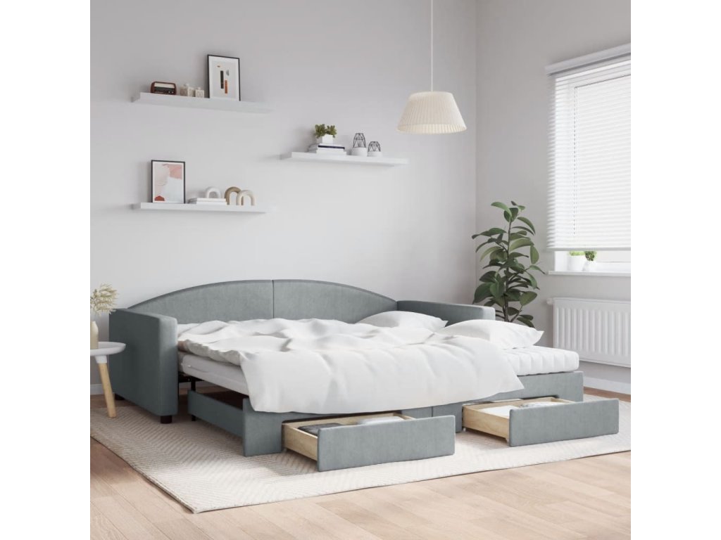 Válenda s přistýlkou a zásuvkami světle šedá 100x200 cm textil 3197247