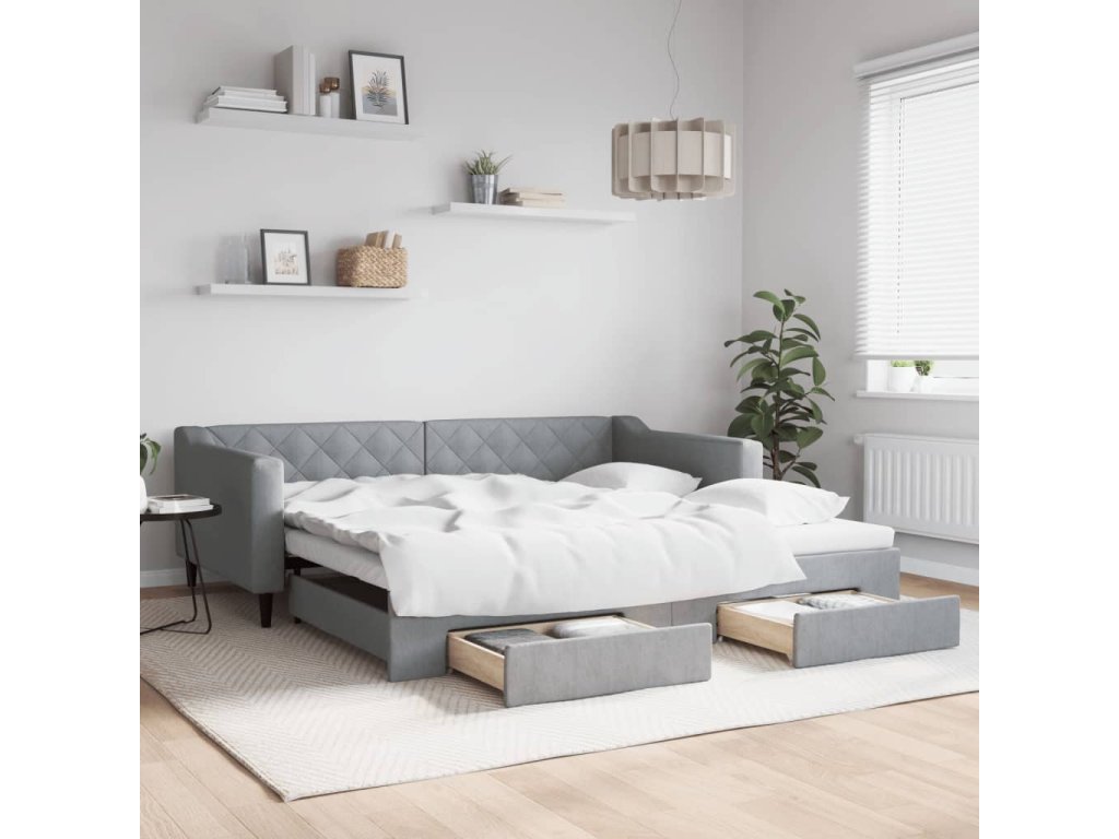 Válenda s přistýlkou a zásuvkami světle šedá 100x200 cm textil 3197467